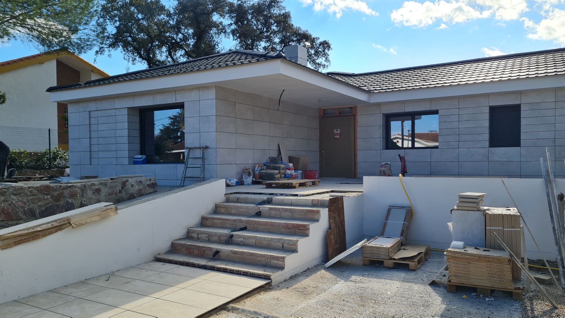 Obra de reforma y ampliación de vivienda unifamiliar en Córdoba. El proyecto reformaba la vivienda de forma integral y la ampliaba para dar servicio a las necesidades de los clientes. Además el exterior se reconfiguró completamente, al que se le añadió una rampa para darle accesibilidad a la vivienda en todos sus puntos, y una piscina de tipo infinita. Se tuvo especial cuidado con la mejora energética ya que se realizó una nueva cubierta con aislamiento inyectado y tejas cerámicas con canalón oculto. La fachada se realizó de tipo ventilada, y aislamiento por el exterior, con la consiguiente mejora del confort térmico interior y la eliminación de puentes térmicos.
