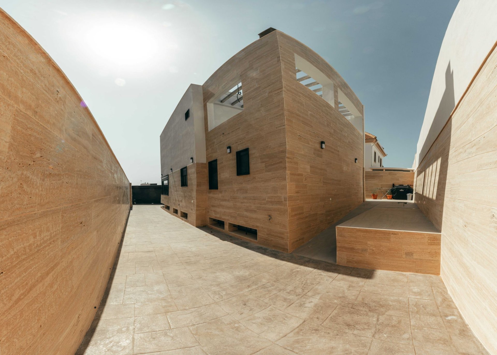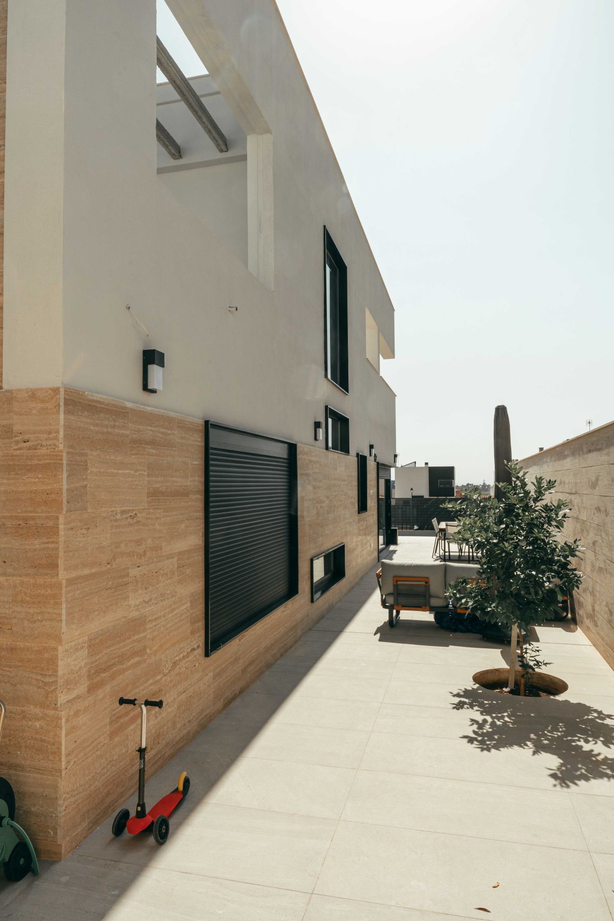 Proyecto de construcción de vivienda unifamiliar en la Costa del Sol. Se trata de una vivienda de tipo aislada, distribuida en sótano, baja y planta alta. El proyecto busca enfocar las vistas hacia la costa, evitando las miradas a los costados y dado provacidad a la vivienda. Estéticamente se compone de un aplacado a hueso de Mármol Travertino.